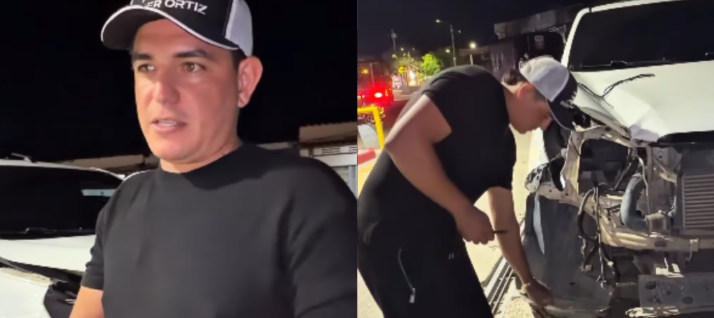 Minutos después, ya en una zona concurrida de la carretera, el cantante mostró el estado de su camioneta. En las imágenes se observaba la parte frontal seriamente afectada y uno de los focos destruido producto del choque.